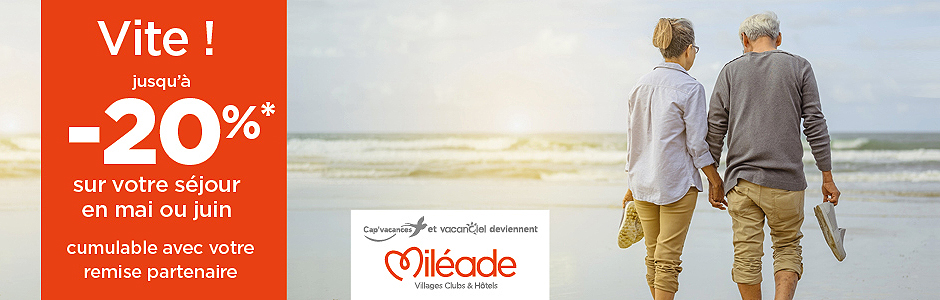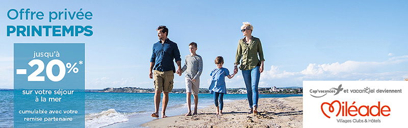 Vite, réservez avec le code promotion MILJANV22 entre le 8/02 et le 8/03votre séjour à la mer en avril : jusqu'à -20%, cumulable avec votre remise partenaire habituelle.
